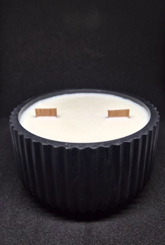 • naturalny wosk, 2 knoty, delikatnie wyczuwalny zapach kawy, przeznaczona dla osob preferujące słabsze zapachy, pojemnosc 360g duży cementowy czrany pojemnik.
